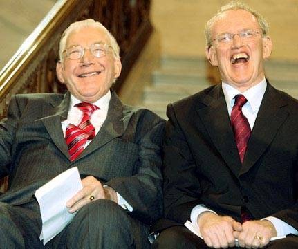Sinn Fein’s Martin McGuinness has taken the job of Ian Paisley’s Deputy. Together they have become known as the “Chuckle Brothers” as they knee slap with George Bush and cut the opening ribbon to tacky shopping developments in Belfast. McGuinness’s lack of dignity not withstanding, the former IRA Commander sits as a Minister of the British Crown. This erstwhile revolutionary who once was at war with the very idea of a Stormont administers its rule. Sinn Fein still have the shamelessness to claim to be socialists as they partner with Ian Paisley, who believes the world is four thousand years old, the pope is the anti-Christ and who once led a “Save Ulster from Sodomy” campaign. The DUP is the most right-wing party in power in Western Europe and Sinn Fein “chuckle” as they administer the rule of a thoroughly capitalist British state with them.
