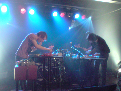 Maybe last night’s show was not the future of music but it was very definitely one of the visionary musical side roads. The influential bands of 2030 will be inspired by this. If Radiohead were producing similar music it would be on sale in every supermarket in the country and critics would accuse them of becoming sellout popsters. For some reason you don’t get to hear Holy Fuck (HF) on the radio that much, probably down to poor management or something. Listen to the track Lovely Allen and you’ll agree. Better still go and buy the Young Turks album and play it loud.