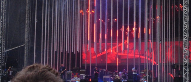 Tonight’s show was the first of two in Victoria Park and the ten minute journey time suited me down to the ground. The downside was that some coked-up, braying arseholes from the City found it equally convenient and on a couple of occasions they drowned out the music. The lighting rig would have made a perfect gallows.