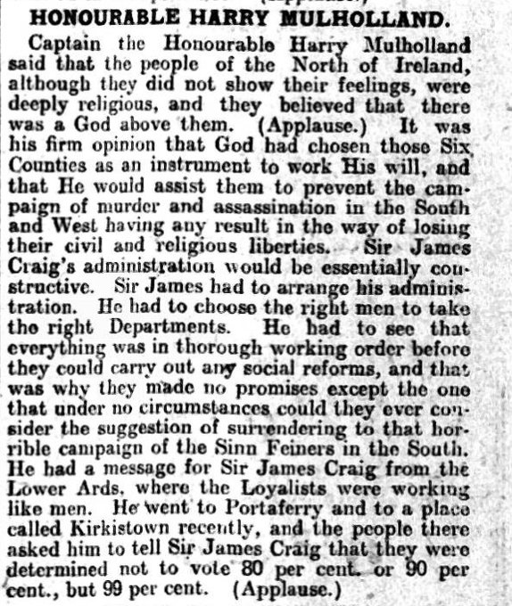 The loyal folk of Ulster have long understood, in the words of Captain, the Honourable Harry Mulholland, that “God has chosen these six counties as an instrument to work His will”. They also understand that His ways are mysterious and they are beset by traitors, Roman Catholics, Bolshevists, international finance (and we all know what that means), the international labour movement and latterly, wokery and all that LGBTQI+ stuff.