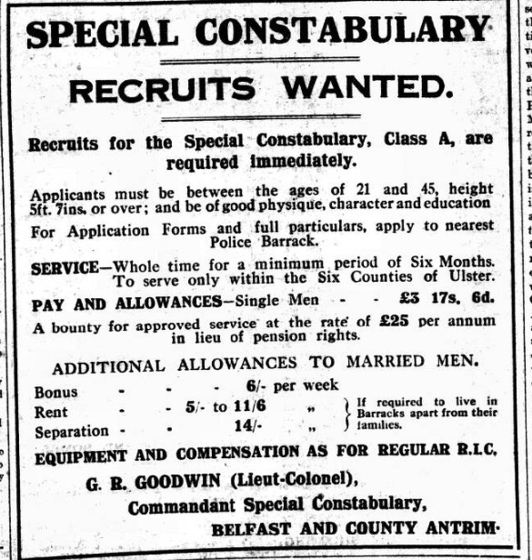 Ulster was first to mobilise former World War One veterans into militias and street gangs which were then incorporated into the state’s apparatus with the express purpose of terrorising malcontents. And the state’s official police force wasn’t averse to a bit of prophylactic murder in the 1920s. Hitler didn’t get round to wiping out whole families until the late 1930s. The RUC were doing it in 1922. Ulster got there first!