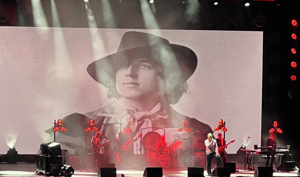 Still, things could have been much worse. There were no guest appearances by Tommy Robinson or Nigel Farage and the closest he came to being edgy was when he said, “I’m very concerned with all communities but the one that’s at risk now is my own community.” At this point a massive picture of Oscar Wilde appeared and he started playing English Blood, Irish Heart. I choose to take this as meaning that he defines his community as gay, Irish writers. I am sure that was the intention.